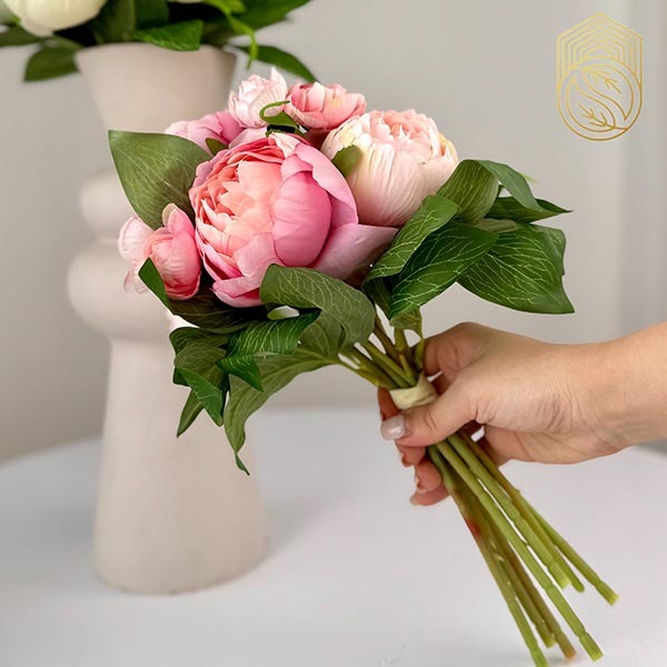 - قابل شستشو ۶ گل قطر ۷سانت و۴ غنچه همراه با برگ اطراف مناسب دسته گل