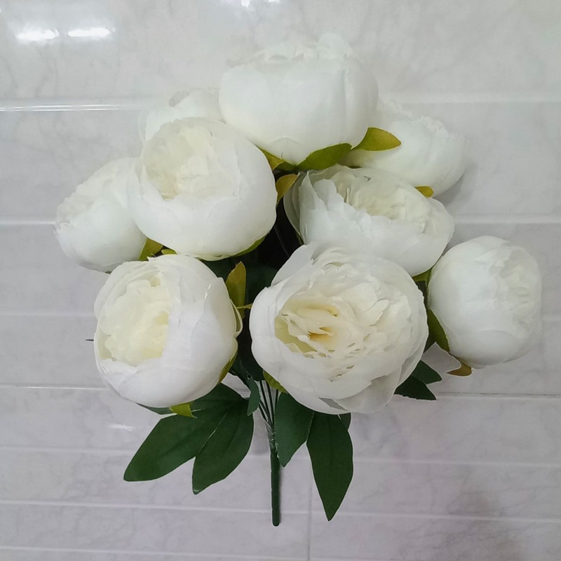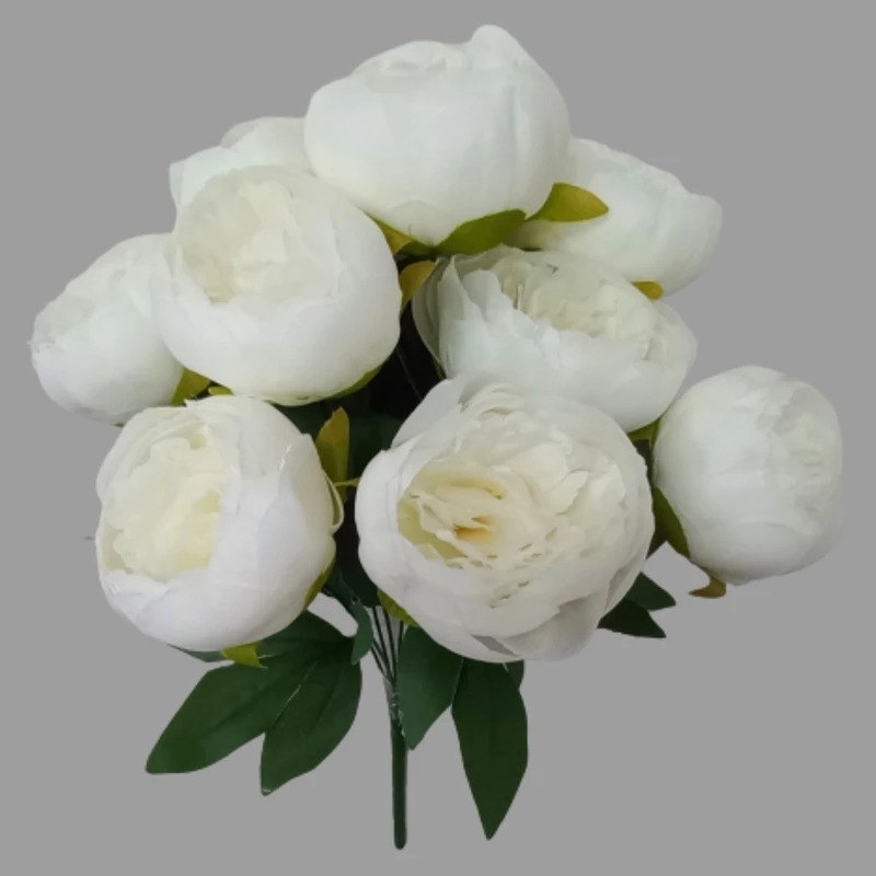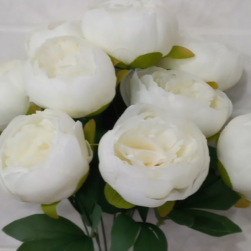 گل مصنوعی مدل پیونی 9گل وارداتی سفید