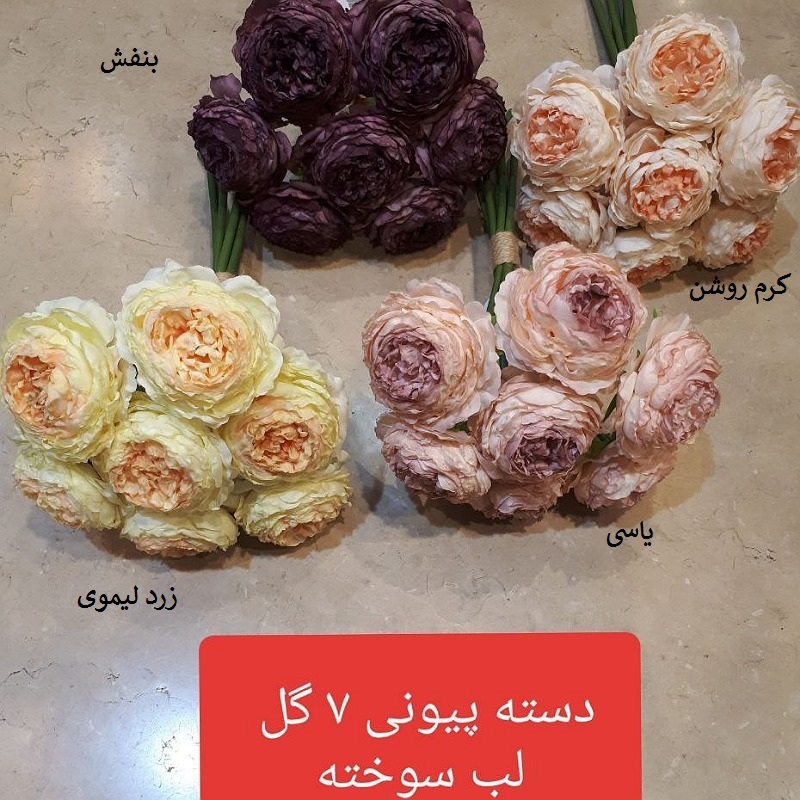 گل مصنوعی مدل بوته پیونی لبه سوخته 7گل وارداتی